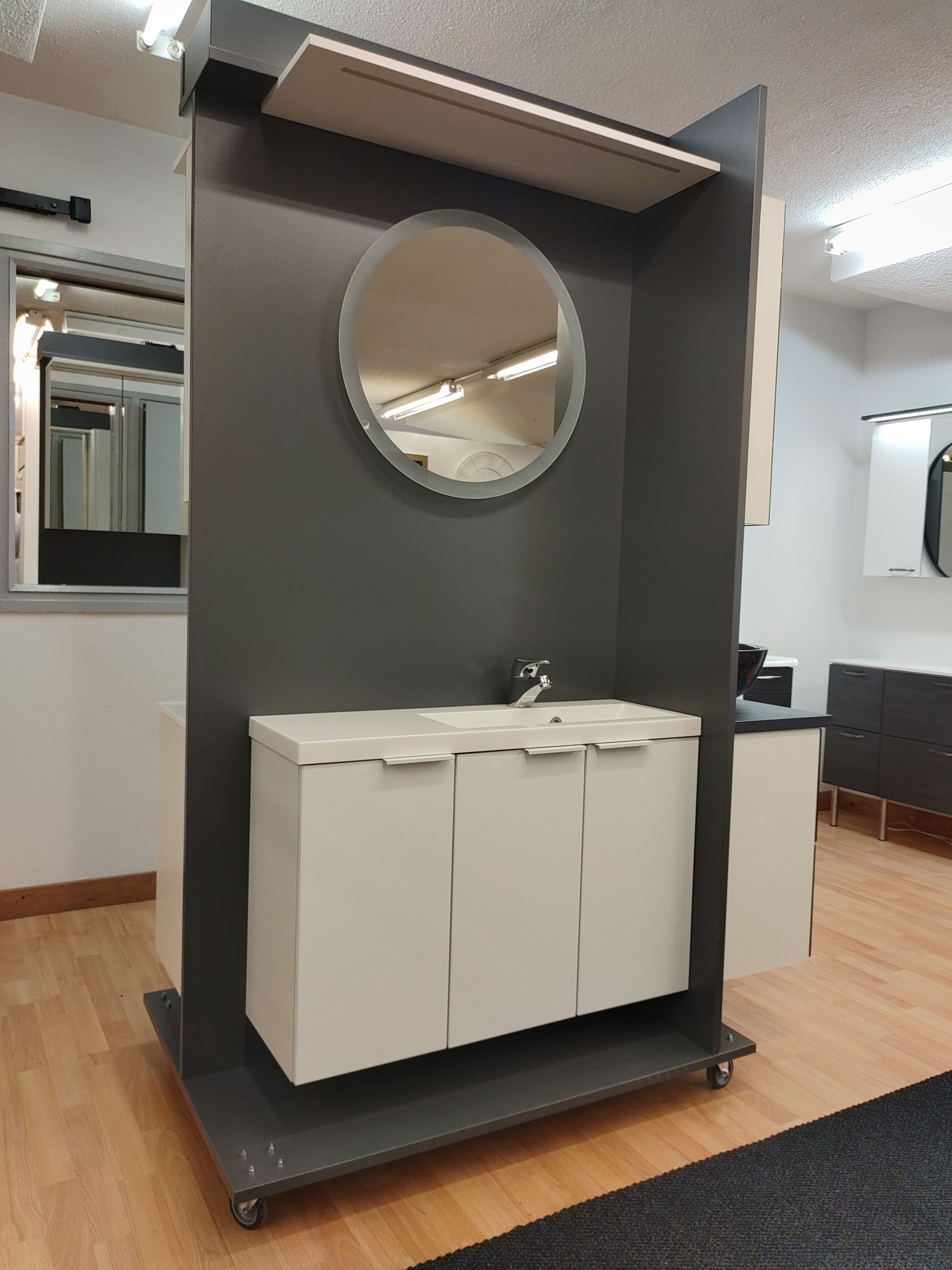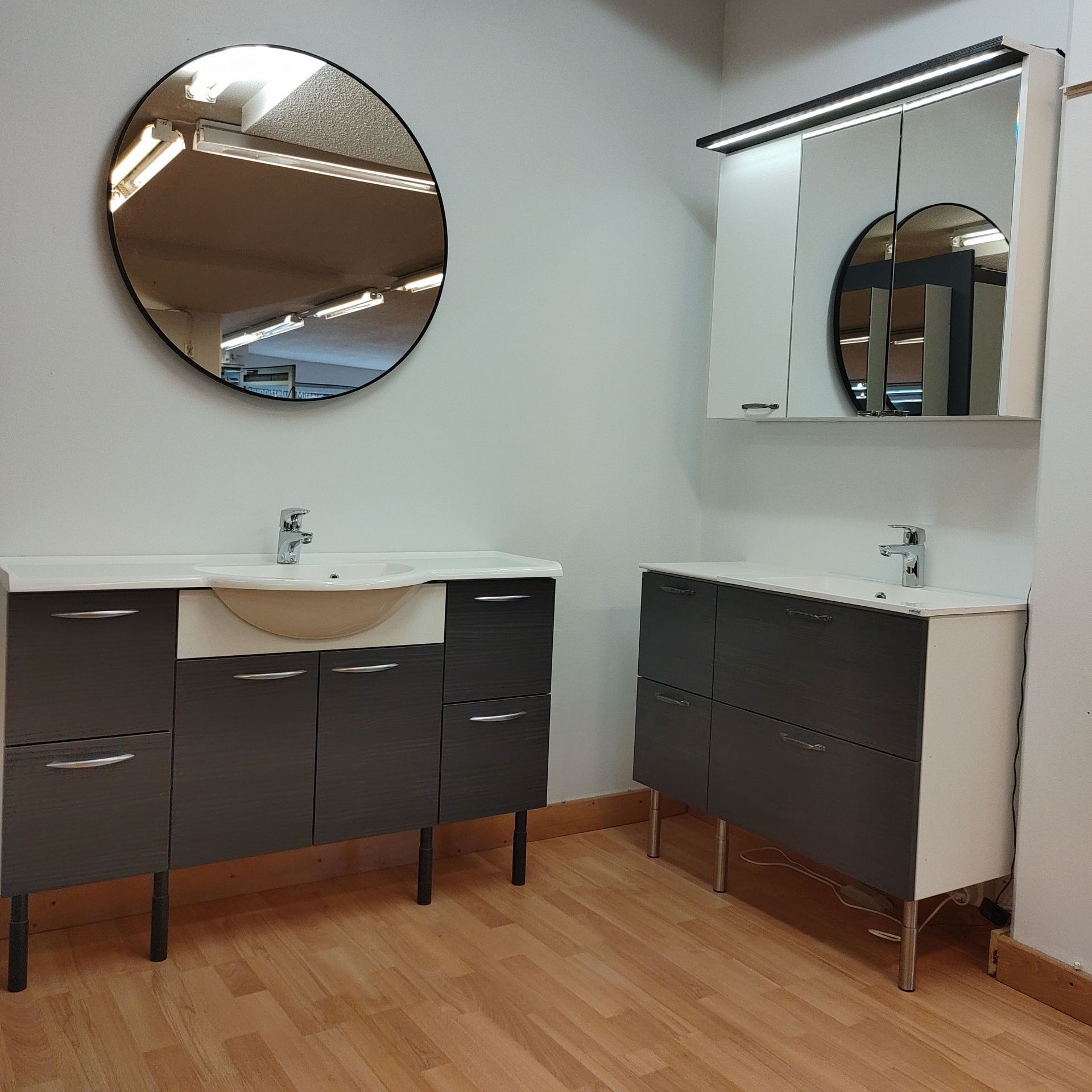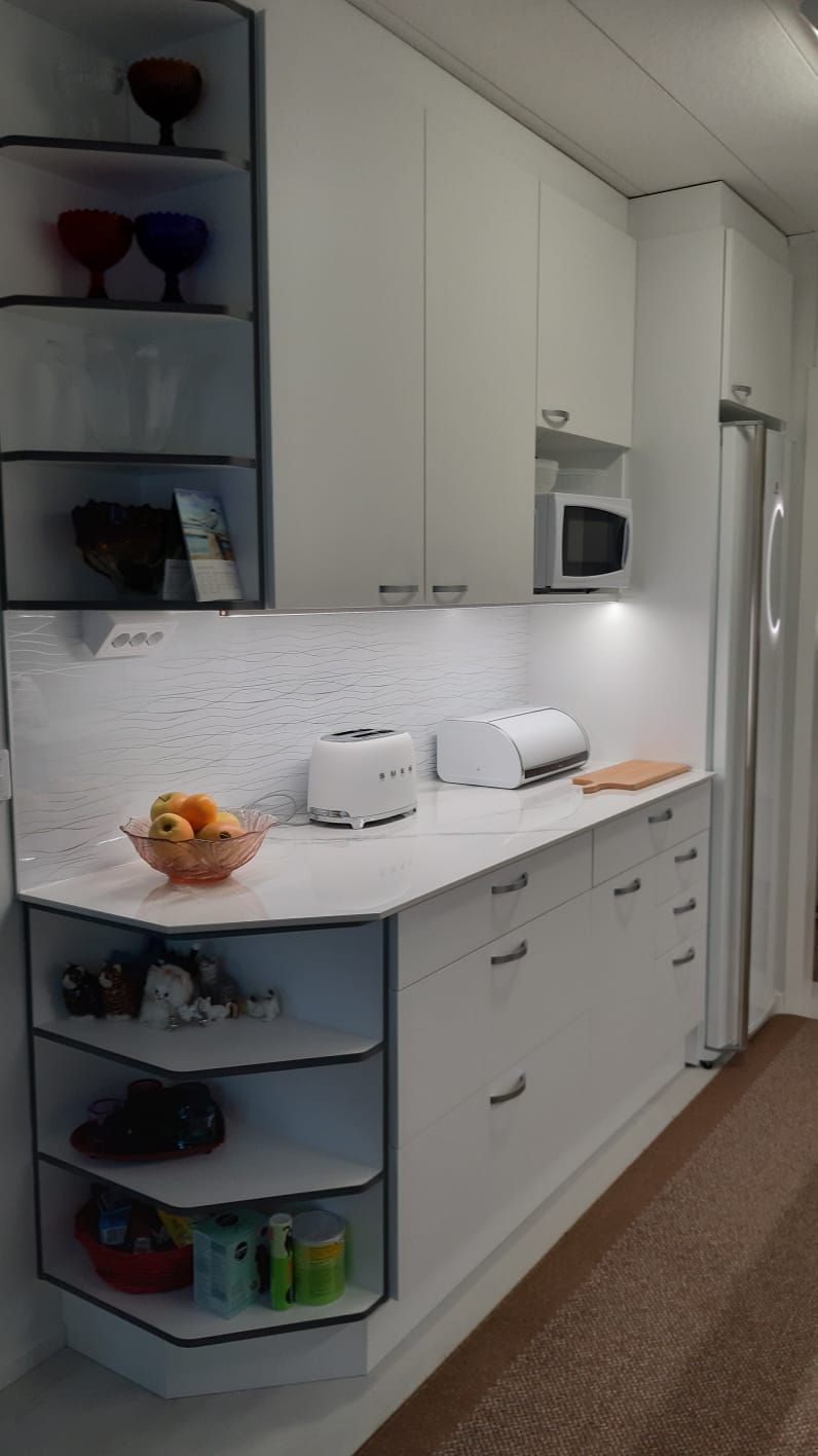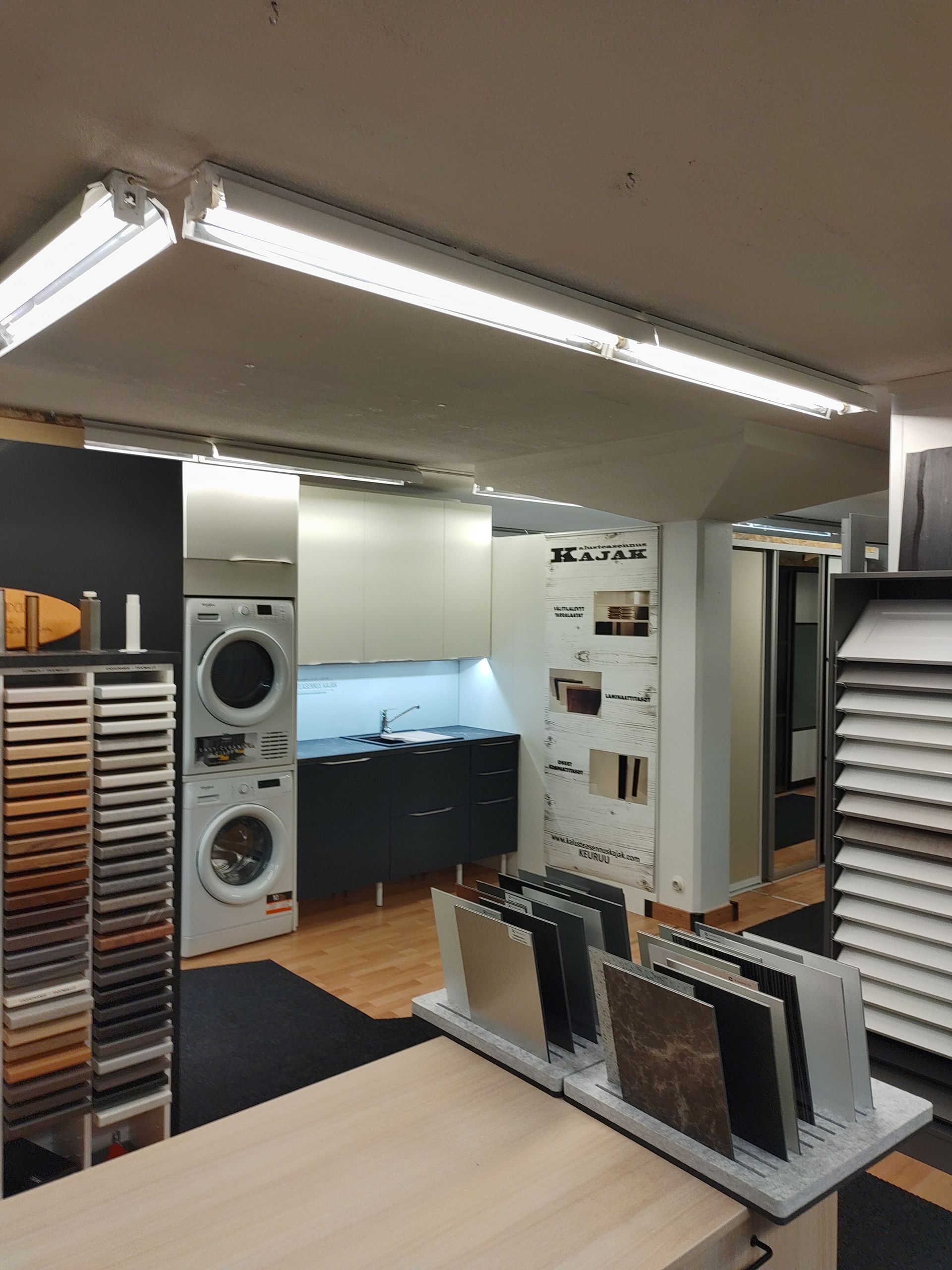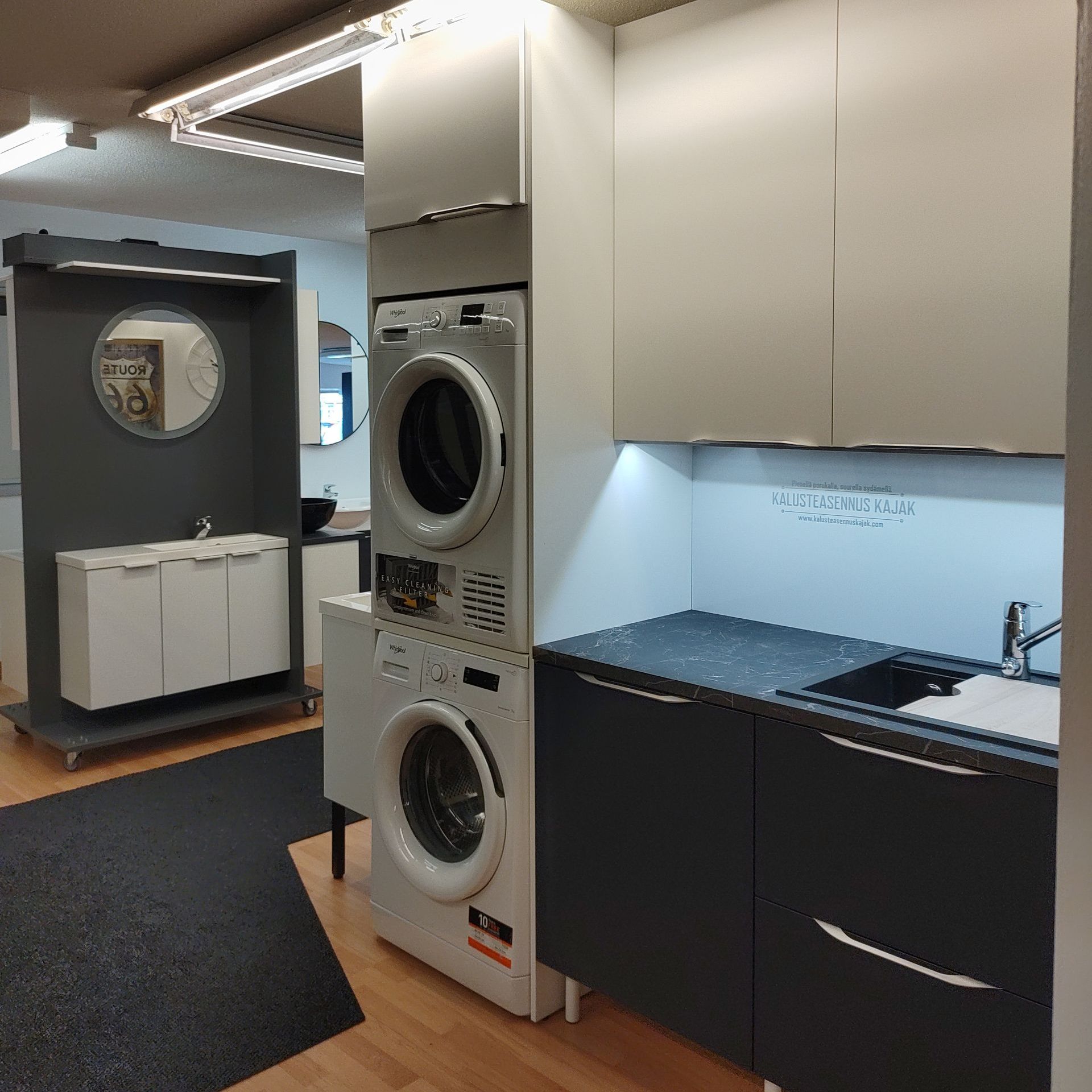 Näyttelytilassamme on nähtävillä malliryhmiä keittiökalusteista, kylpyhuonekalusteista, säilytyskalusteista sekä komeroista ja liukuovikaapeista.