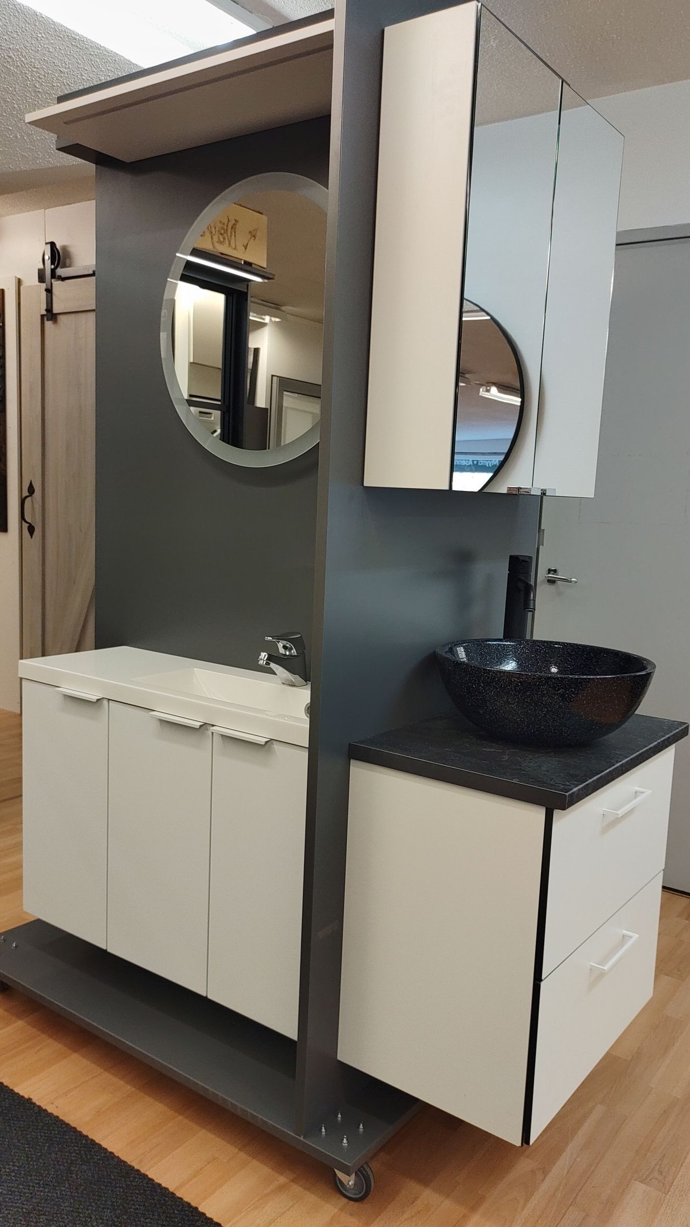 Kattavasta kylpyhuonekalusteiden valikoimastamme löytyy runsaasti erilaisia ovi-, taso-, ja vedinmalleja. Tervetuloa tutustumaan valikoimaan tarkemmin Showroom Myymälään. Autamme mielellämme suunnittelemaan juuri sinun tarpeisiisi sopivan kylpyhuoneen.